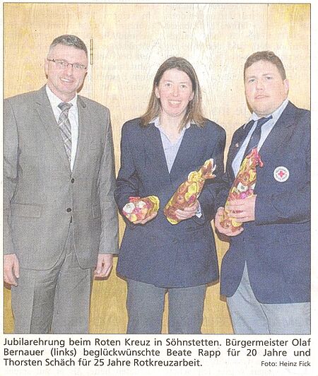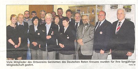 Viele Mitglieder des DRK Ortsvereins Gerstetten wurden geehrt (Heidenheimer Zeitung vom 01.04.14)