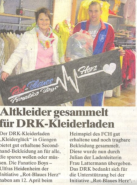 Die Fanatico Boys - Ultras Heidenheim der Initiative "Rot-Blaues Herz" haben für den DRK-Kleiderladen Bekleidung gesammelt (Neue Woche vom 30.04.14)