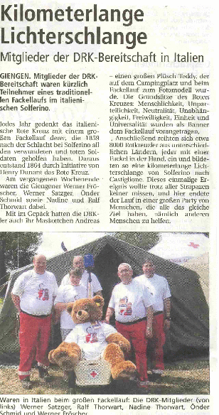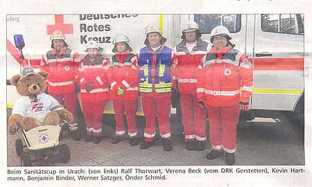 DRK in Giengen feierte 90. Gründungstag mit Sanitätsorientierungslauf, Festakt und Ausstellung historischer Uniformen (Heidenheimer Zeitung vom 14.05.14)