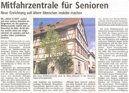 Neue Einrichtung soll ältere Menschen mobiler machen. DRK Heidenheim ist Kooperationspartner der Koordinierungsstelle der Stadt Heidenheim. (Heidenheimer Zeitung vom 19.08.14)