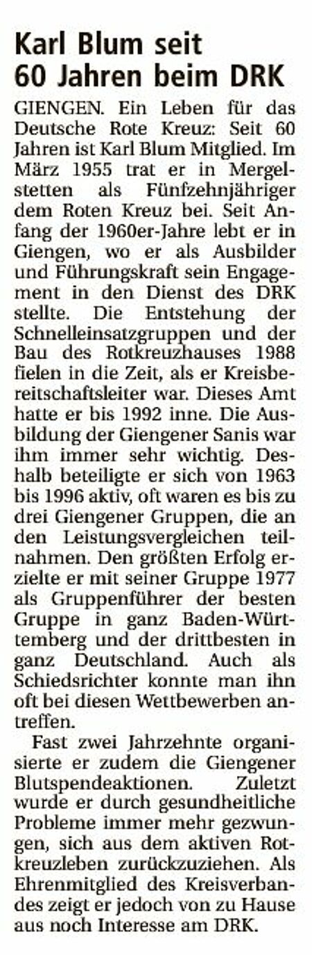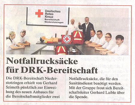 Rotes Kreuz bietet neue Gruppe in Frickingen - Generationswechsel bei den Übungsleitern (Heidenheimer Zeitung v. 19.05.15).