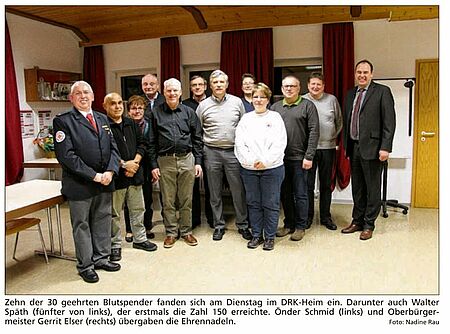 Insgesamt 30 Blutspender wurden im DRK-Heim ausgezeichnet (Heidenheimer Zeitung v. 14.01.16)