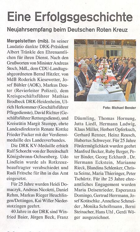 Zahlreiche Auszeichnungen beim Jahresempfang des DRK in Mergelstetten (Heidenheimer Zeitung v. 26.01.16).