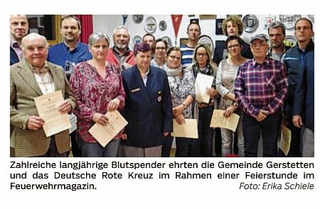 Gemeinde Gerstetten und DRK zeichneten 35 langjährige Blutspender aus. (Heidenheimer Zeitung v. 29.11.16)