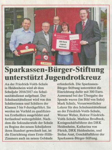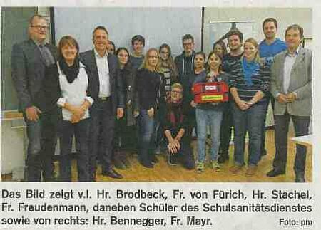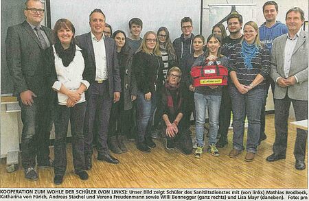 Schulsanitätsdienst kooperiert mit DRK und der Barmer GEK (Wochenzeitung v. 03.12.16)