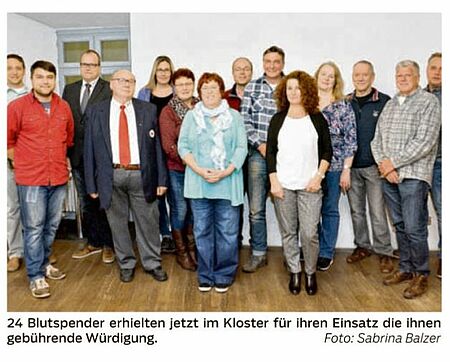 Bürgermeister Dr. Bernd Sipple zeichnet zwei Dutzend Blutspender aus. (Heidenheimer Zeitung v. 18.11.16)