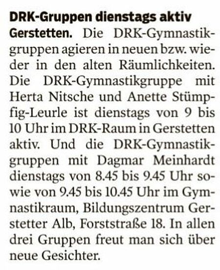 Eine Fortbildung fand für 50 Übungsleiterinnen an 2 Terminen statt. (Heidenheimer Zeitung v. 06.12.16)