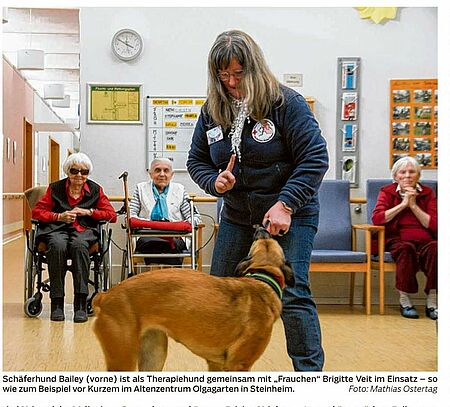 Mit dem Projekt Therapiehunde will das DRK jungen wie alten Menschen geistig auf die Sprünge helfen. Zu Besuch im DRK-Altenhilfezentrum Im Olgagarten in Steinheim (HZ v. 24.03.17).