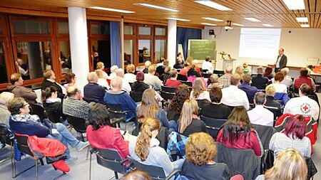 Manfred Kiss (Vizepräsident des DRK-Kreisverbandes Heidenheim und Mitglied in der Ethikkommission des Kreiskrankenhauses Heidenheim) stellte gestern am 08.03.17, rund 70 DRK´lern verschiedene Vorsorgemöglichkeiten (Vorsorgevollmacht, Generalvollmacht, Betreuungsverfügung, Patientenverfügung) vor.
