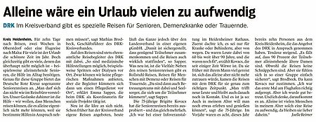 Im DRK Kreisverband gibt es spezielle Reisen für Senioren, Demenzkranke oder Trauernde (HZ v. 26.09.17)