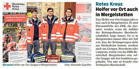 Die Notfallseelsorge im Landkreis Heidenheim wird im Herbst 20 Jahre alt, der Kriseninterventionsdienst des DRK feiert sein 10-jähriges (HZ v. 12.09.18)