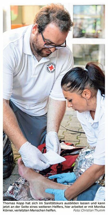 Thomas Kopp hat sich trotz Behinderung dem Rettungsdienst angeschlossen und jetzt sogar den Sanitätsdienst absolviert - dabei hat er sich anfangs lieber noch zurückgehalten (HZ v. 04.07.18).