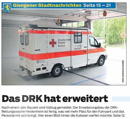 Der Neubau wurde jetzt seiner Bestimmung übergeben. Er bietet reichlich Platz für die Fahrzeuge und Mitarbeiter des DRK-Rettungsdienstes (HZ v. 09.05.20).