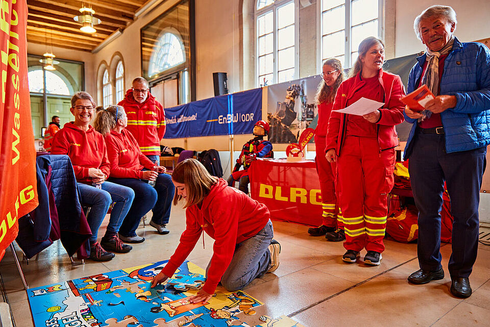 Am Ende hat alles geklappt: Zwar konnten nicht alle Stationen im Ausweichquartier Schranne alles anbieten und zeigen, doch die Giengener aller Altersklassen nahmen das Angebot an. Aufgrund der angespannten Hochwasserlage mussten die DRKler auf die Teilnahme der Freiwilligen Feuerwehr am Mitmachspiel verzichten. Auch das Technische Hilfswerk wurde zwischendurch in den benachbarten Ostalbkreis alarmiert, um beim Befüllen von Sandsäcken zu helfen. Gerade dieser Umstand passte aber wohl auch zum Jubiläum der DRK-Bereitschaft: Die ehrenamtlichen Helferinnen und Helfer sind immer im Einsatz, wenn sie gebraucht werden.
