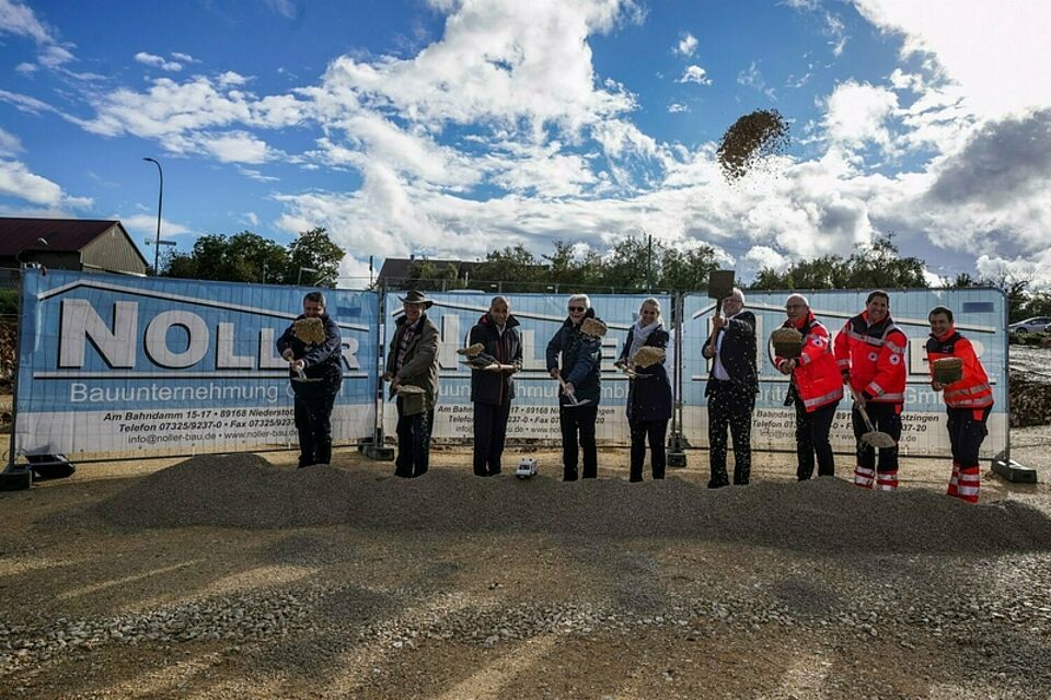 Bereits seit Anfang des Monats sieht man, dass sich auf der Baustelle im Bereich Oster-/Heuchstetter Straße etwas tut. Jetzt sind die vorbereitenden Arbeiten abgeschlossen: Mit dem ersten offiziellen Spatenstich hat am Dienstagnachmittag die heiße Phase begonnen. Entstehen soll dort, am nördlichen Ortseingang Gerstettens, die neue Rettungswache des DRK samt Polizeiposten. Zu Ende gehen damit einige Jahre des Planens und Improvisierens.