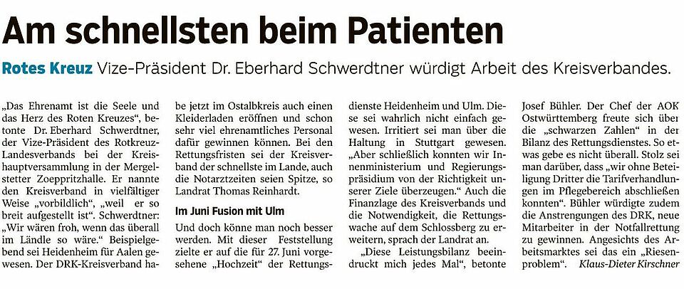 Vize-Präsident Dr. Eberhardt Schwerdtner würdigt Arbeit des Kreisverbandes (HZ v. 13.05.17)