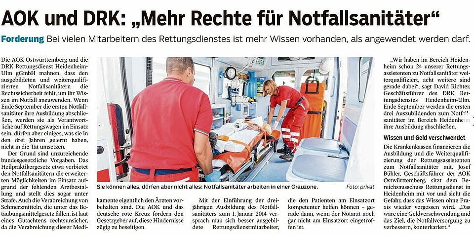 Bei vielen Mitarbeitern des Rettungsdienstes ist mehr Wissen vorhanden, als angewendet werden darf (HZ v. 05.10.17).