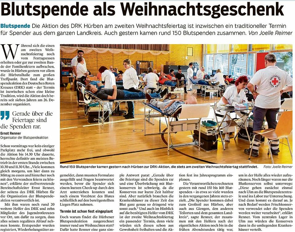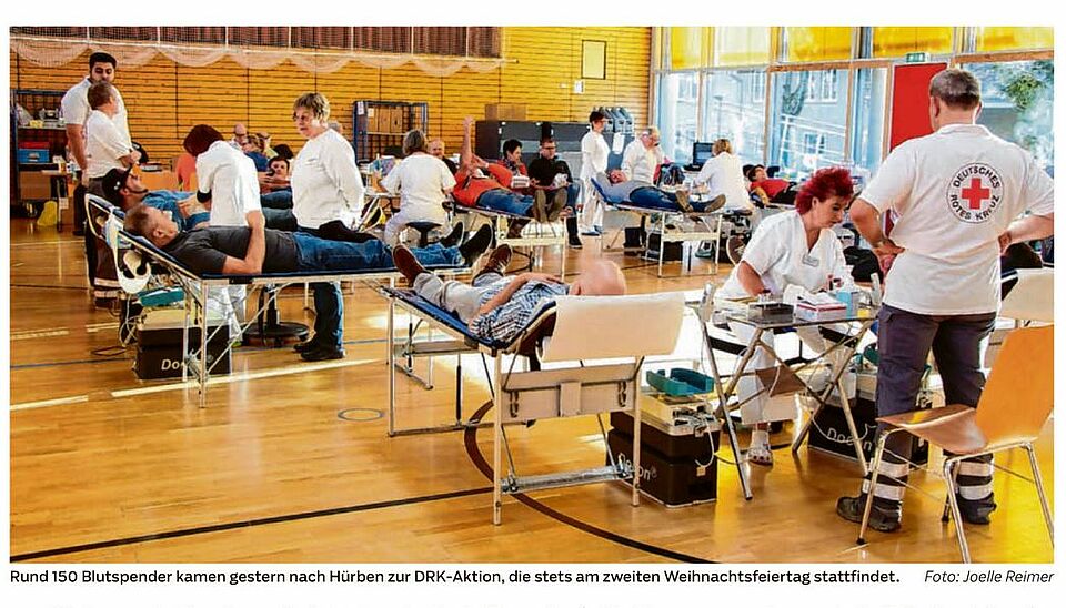 Die Aktion des DRK Hürben am zweiten Weihnachtsfeiertag ist inzwischen ein traditioneller Termin für Spender im ganzen Landkreis (HZ v. 27.12.2017)