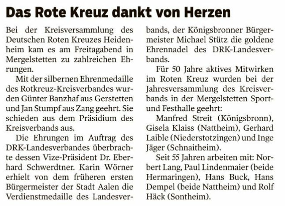 Das Rote Kreuz dankt von Herzen