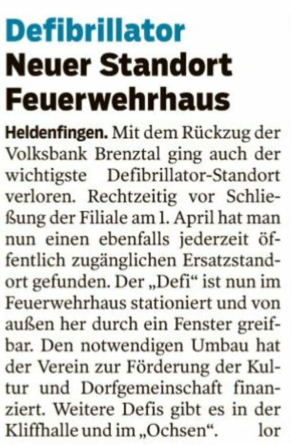 Defibrillator: Neuer Standort Feuerwehrhaus