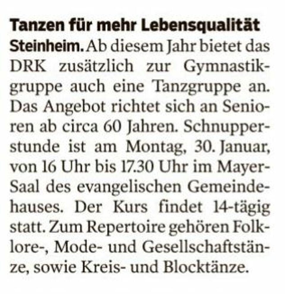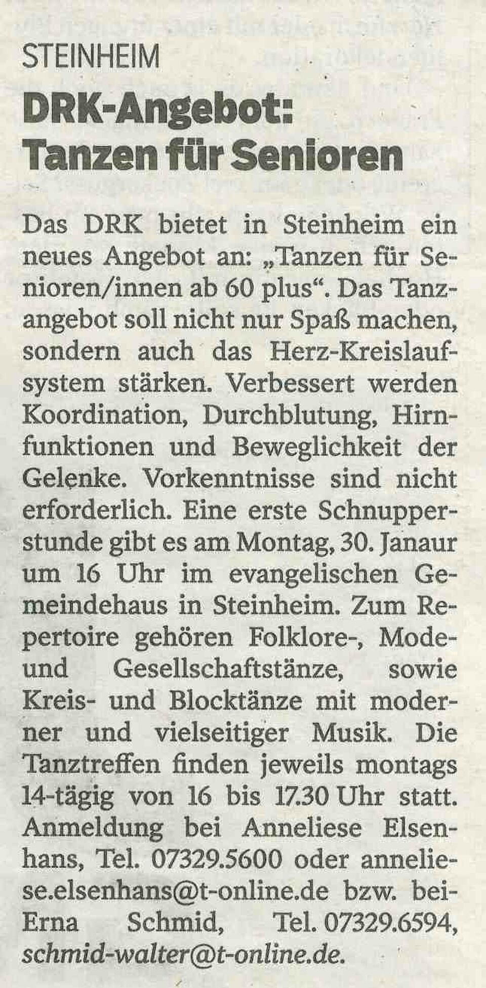 Tanzen für Senioren (Neue Woche v. 18.01.17)