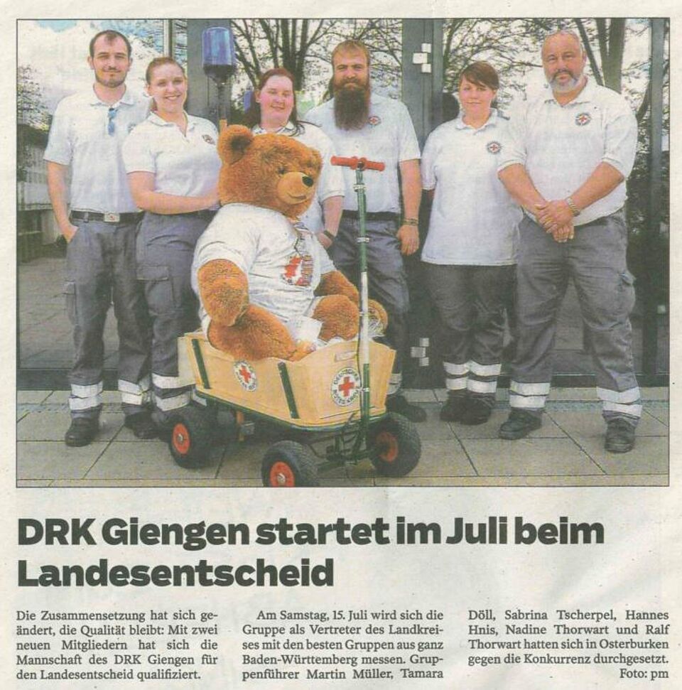 DRK Giengen startet im Juli beim Landesentscheid