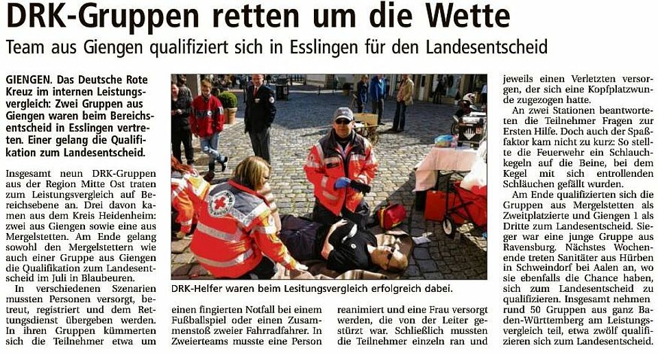 Team aus Giengen qualifiziert sich in Esslingen für den Landesentscheid (Heidenheimer Zeitung v. 22.04.15)
