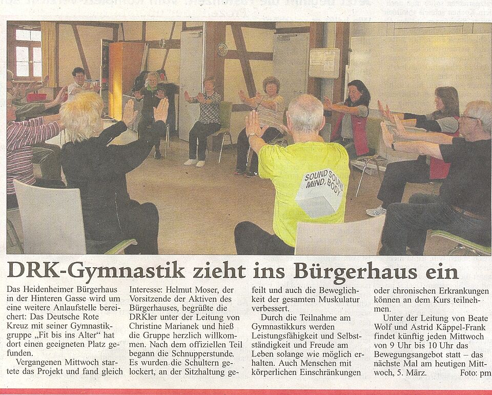 DRK-Gymnastik zieht ins Bürgerhaus ein