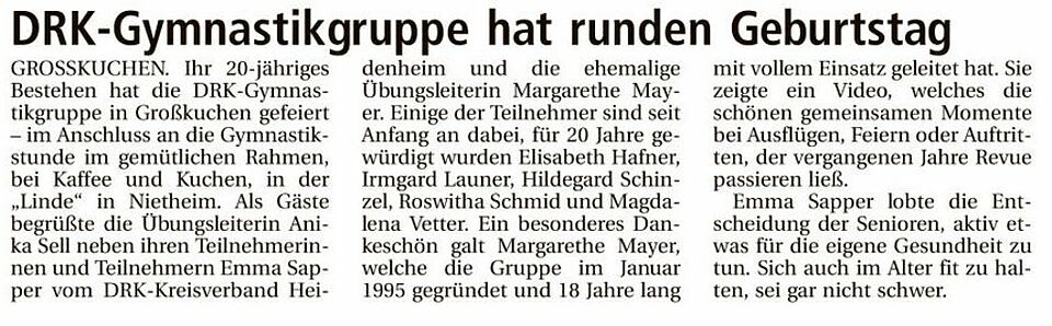 DRK-Gymnastikgruppe hat runden Geburtstag