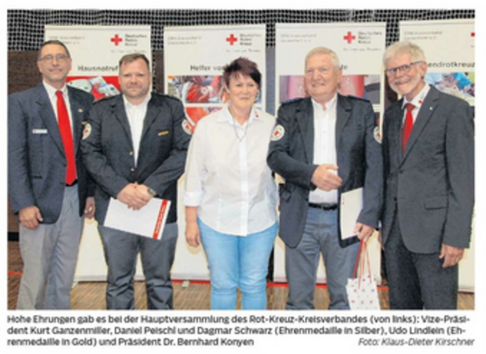 Der SPD-Fraktionschef im Stuttgarter Landtag, Andreas Stoch, unterstrich, "dass Corona uns alle demütig gemacht hat" und forderte bei aller erkennbarer Wertschätzung für die Pflegekräfte, dass sich dies finanziell auch bemerkbar machen müsse. Der Grünen-Landtagsabgeordnete Martin Grath bot nach der coronabedingten Zwangspause die Fortsetzung des gegenseitigen Dialogs an, um weiter Verbesserungen beim Fachkräftemangel, der Gewalt gegen Rettungskräfte und bei den Finanzen zu erreichen. Die Arbeit im DRK ist originär ein Ehrenamt", stelle Hans-Joachim Seuferlein, der Geschäftsführer der AOK Ostwürttemberg fest. Er würdige das gute Miteinander von Haupt- und Ehrenamt. DRK-Vize-Präsident Kurt Ganzenmiller versicherte unter donnerndem Applaus der Versammelten: "Wir lassen nicht nach in unseren Spitzenleistungen!"