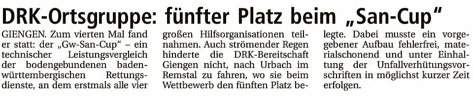 DRK-Ortsgruppe: 5. Platz beim "San-Cup"