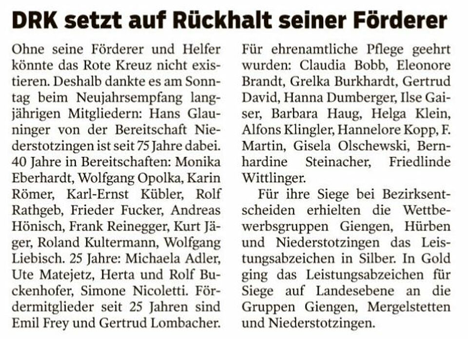 DRK setzt auf Rückhalt der Förderer