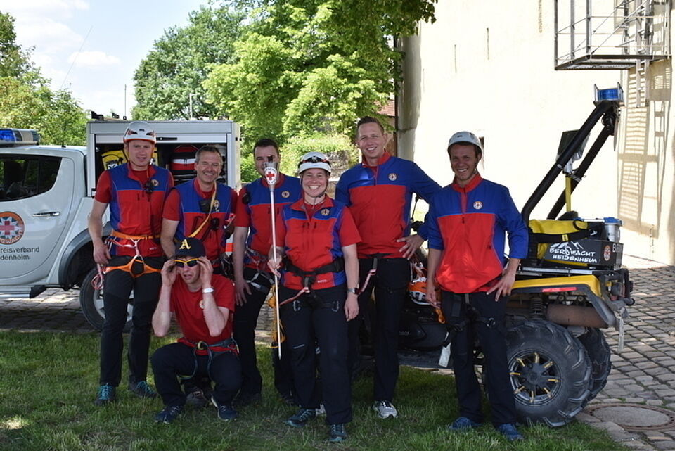 An den Steinernen Jungfrauen startete das Jugendrotkreuz mit der Fackel in Richtung Schloss Hellenstein. Auf dem Weg dorthin wurde noch ein kleiner Zwischenstopp an der Voith-Arena eingelegt. Weiter ging es dann mit dem Fackelzug ans benachbarte Schloss Hellenstein. Dort warteten bereits Mitglieder der Bergwachten Heidenheim und Herbrechtingen, um die Fackel zu übernehmen und über die Schlossmauer in die Heidenheimer Innenstadt herabzulassen.