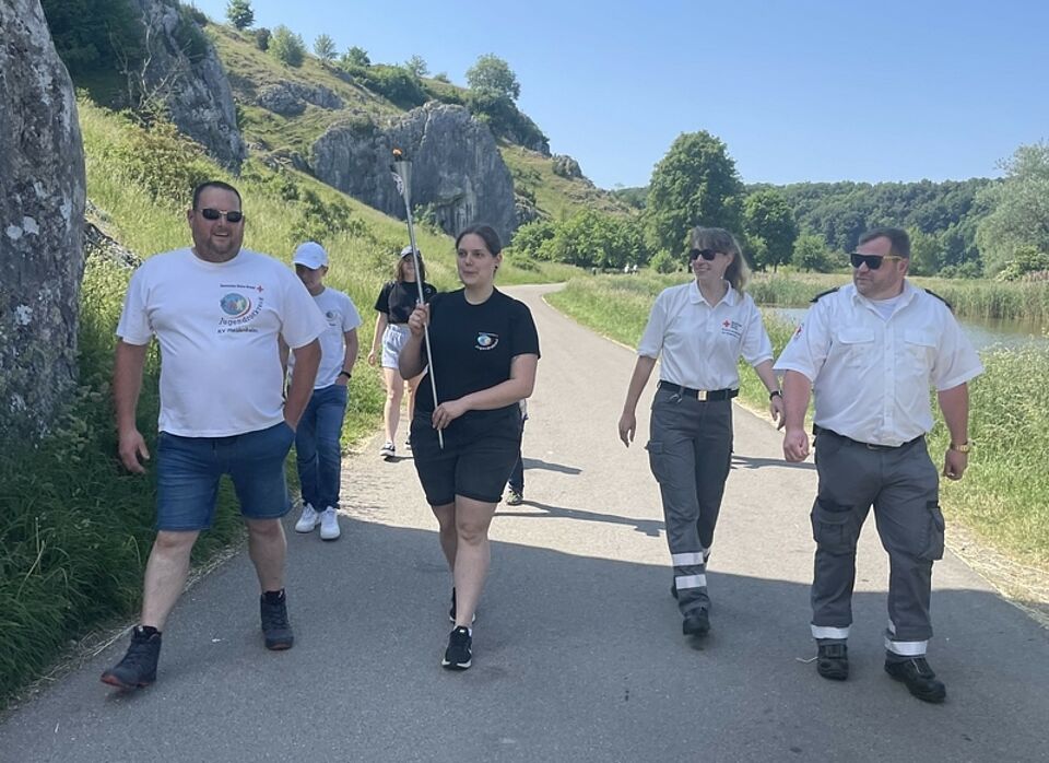 Von den Kameradinnen und Kameraden des DRK-Kreisverbands UIm übernahmen die Heidenheimer Rotkreuzler die Fackel in Altheim/Alb und brachten sie über die Kreisgrenze ins Eselsburger Tal. Von dort begann der Fackelzug durch den Landkreis.