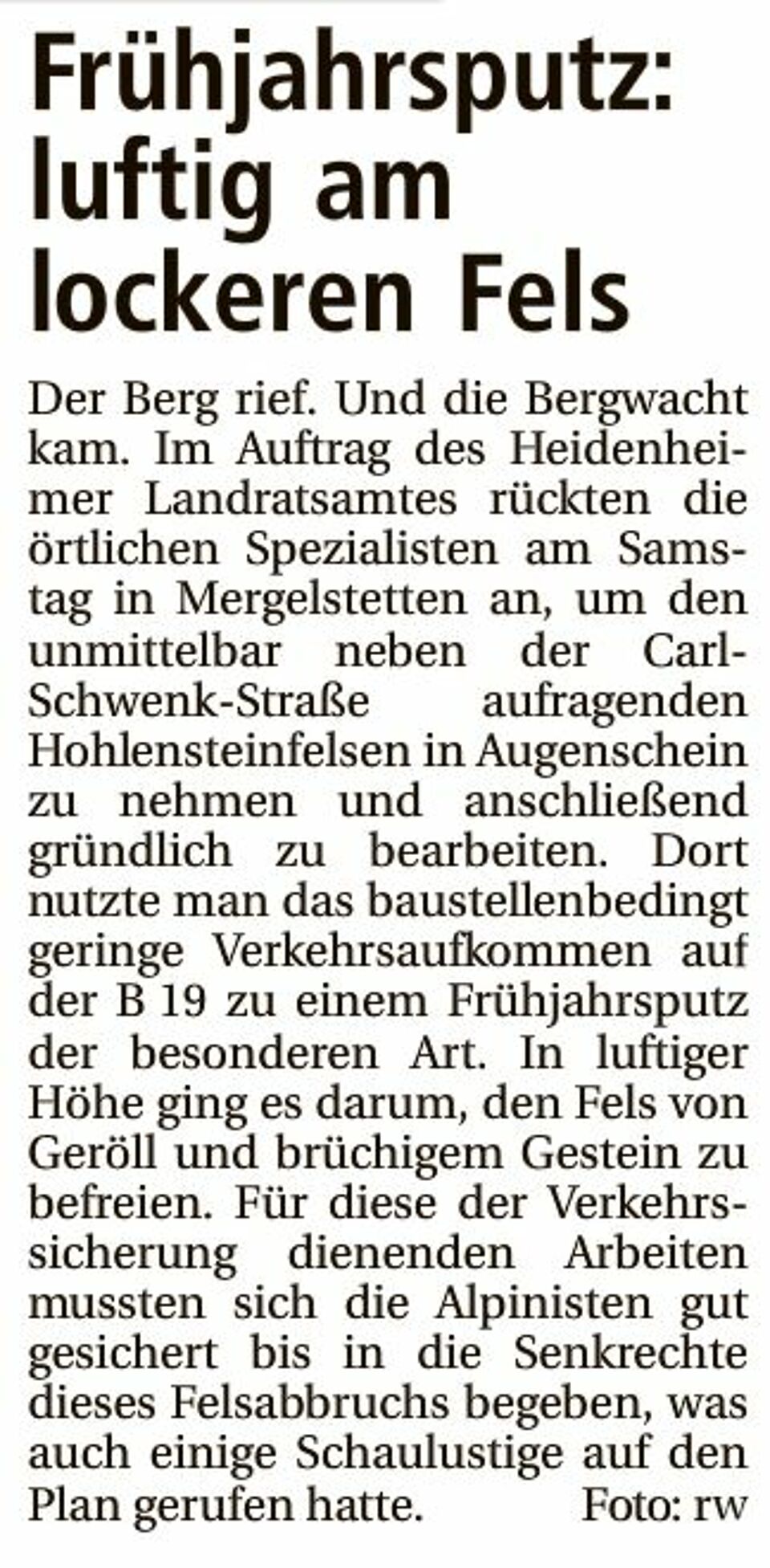 Luftig am lockeren Fels (Heidenheimer Zeitung v. 20.04.15)