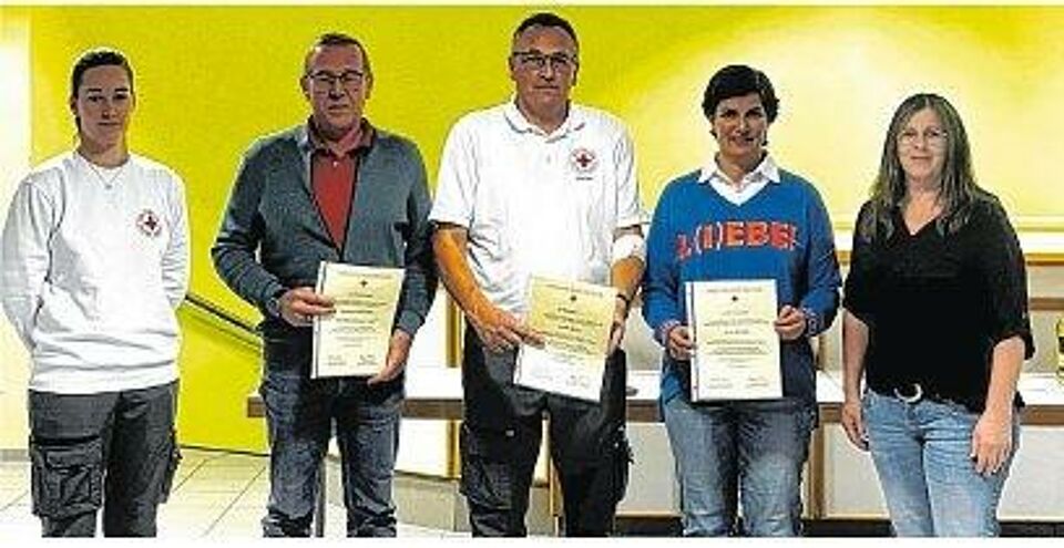 Nattheim. Im Rahmen der jüngsten Blutspende-Aktion wurden acht Bürgerinnen und Bürger geehrt. Alle zusammen haben 150 Mal Blut gespendet. Gemeinsam mit Ellen Eberhardt von der DRK-Bereitschaft überreichte Carmen Steckbauer stellvertretend für Bürgermeister Norbert Bereska die Urkunden und Ehrennadeln. Ausgezeichnet wurden: Reiner Buck für 50 Blutspenden, Sonja Beyerle und Hans-Peter Puritscher für jeweils 25 Blutspenden sowie Antonia Haas, Veronika Hornig, Bernd Palinkas, Sabrina Reinhardt und Andreas Uhlhorn für jeweils zehn Blutspenden.