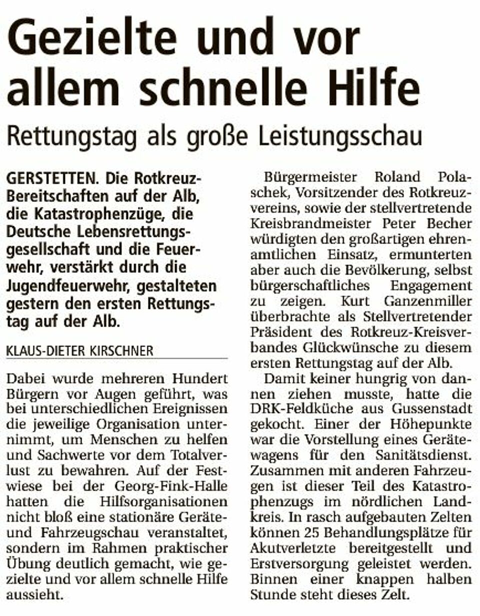 Rettungstag als große Leistungsschau (Heidenheimer Zeitung v. 13.07.15)