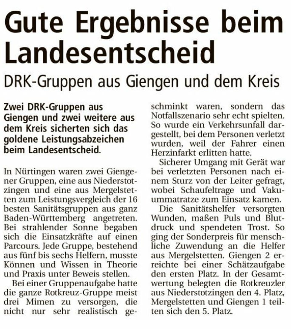 DRK-Gruppen aus Giengen und dem Kreis (Heidenheimer Zeitung v. 19.07.16)