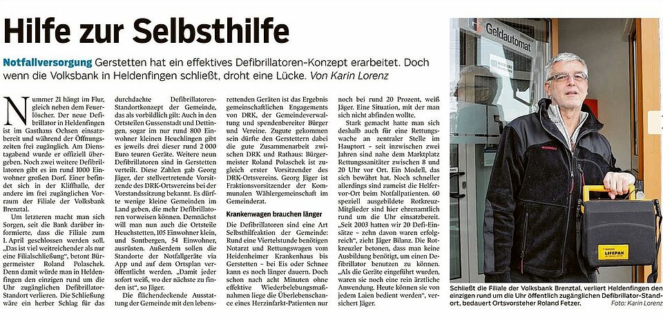 Gerstetten hat ein effektives Defibrillatoren-Konzept entwickel (HZ v. 13.01.17)