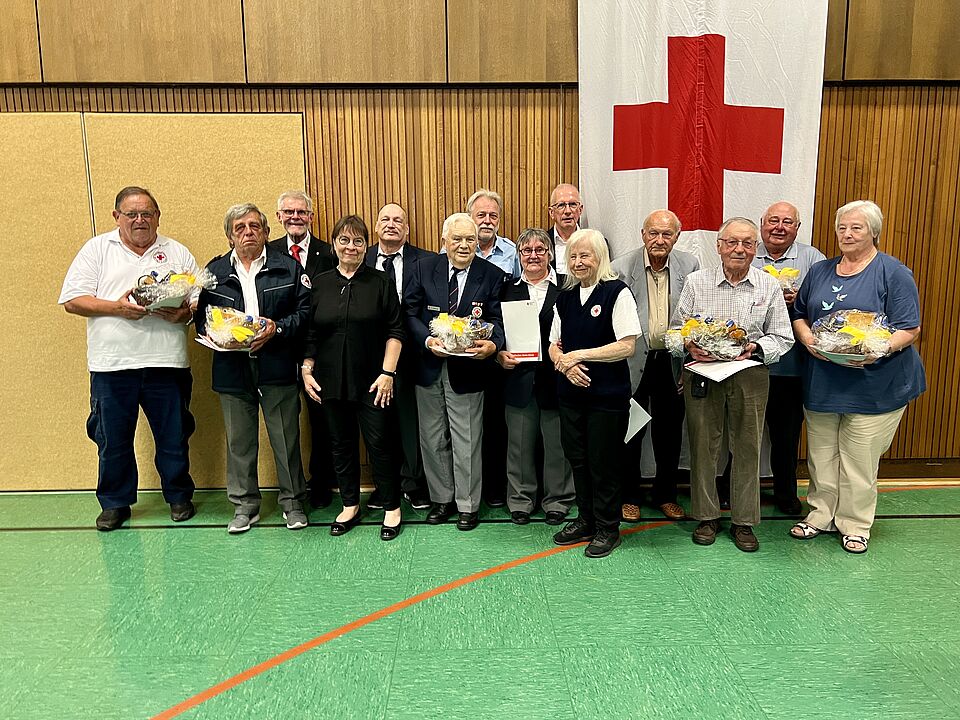 Ehrenamtliche Helferinnen und Helfer aus den DRK-Bereitschaften wurden zudem für 50, 60, 65 und sogar 70 Jahre aktive Mitgliedschaft geehrt. Es war aus Sicht des DRK-Kreisverbandes schön zu sehen, dass sich viele nach Burgberg aufgemacht hatten, um ihre verdienten Ehrungen persönlich in Empfang zu nehmen. Präsident Konyen hatte bei jedem Jubilar sehr persönliche und wertschätzende Worte parat.