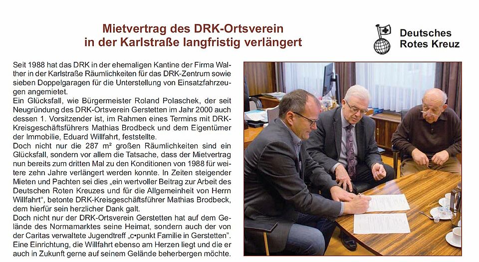 Mitvertrag des DRK-Ortsverein in der Karlstraße langfristig verlängert