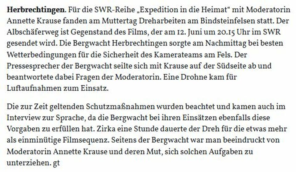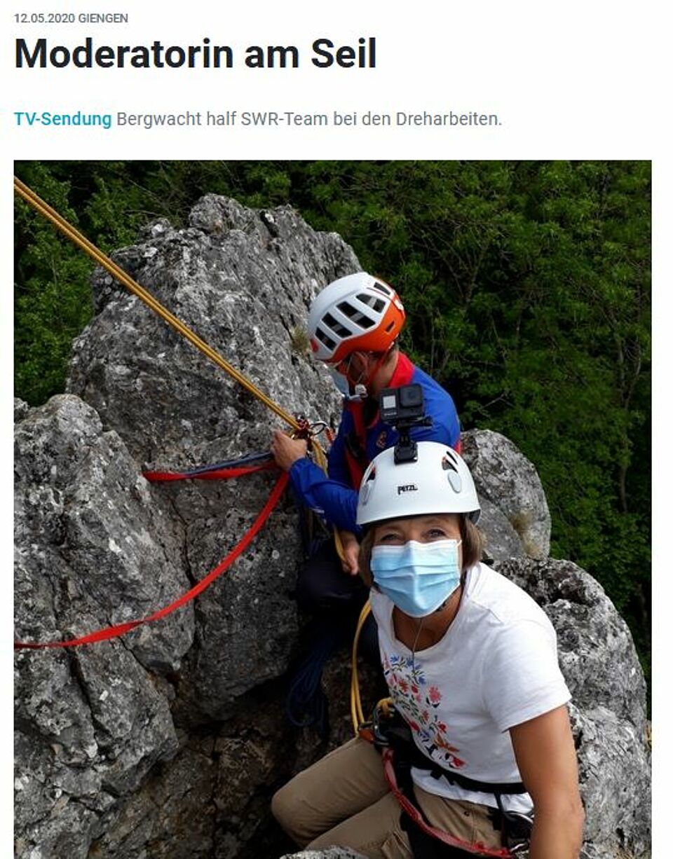 Bergwacht half SWR-Team bei den Dreharbeiten (HZ v. 12.05.20).