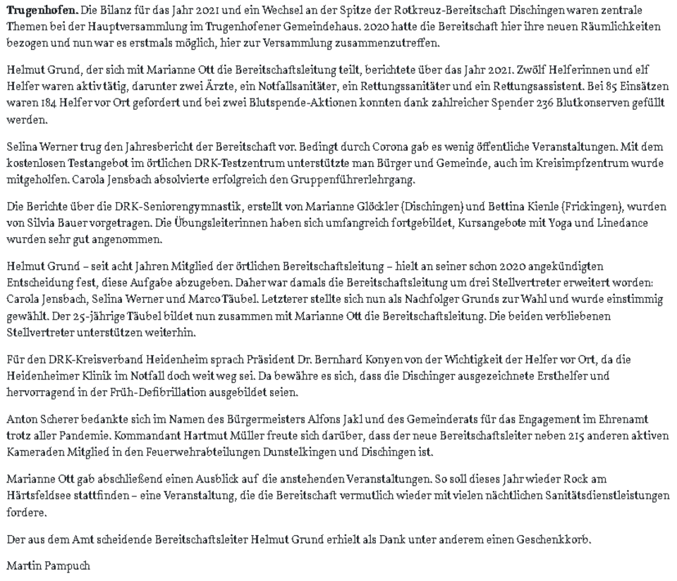 Neue Leitung beim Dischinger DRK