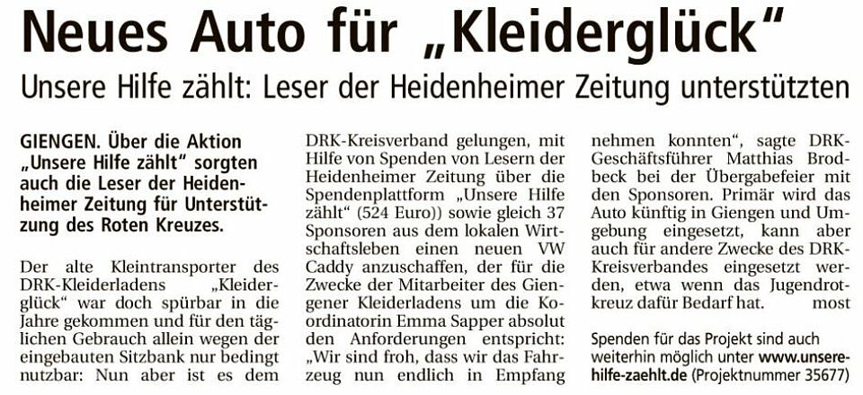 Neues Auto für "Kleiderglück"