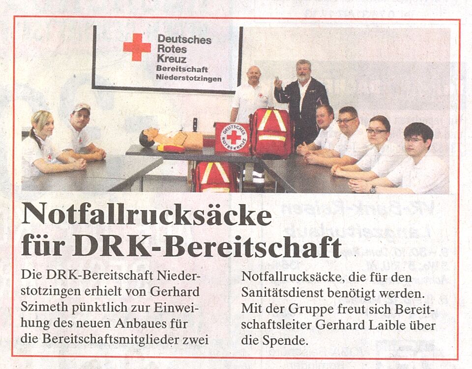 Notfallrucksäcke für DRK-Bereitschaft