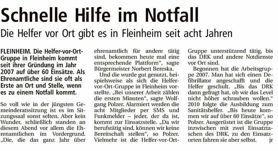 Die Helfer vor Ort gibt es in Fleinheim seit acht Jahren (HZ v. 23.12.15)