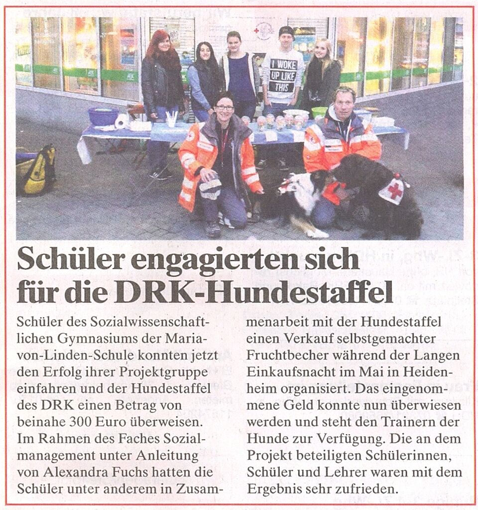 Schüler engagierten sich für die DRK-Hundestaffel