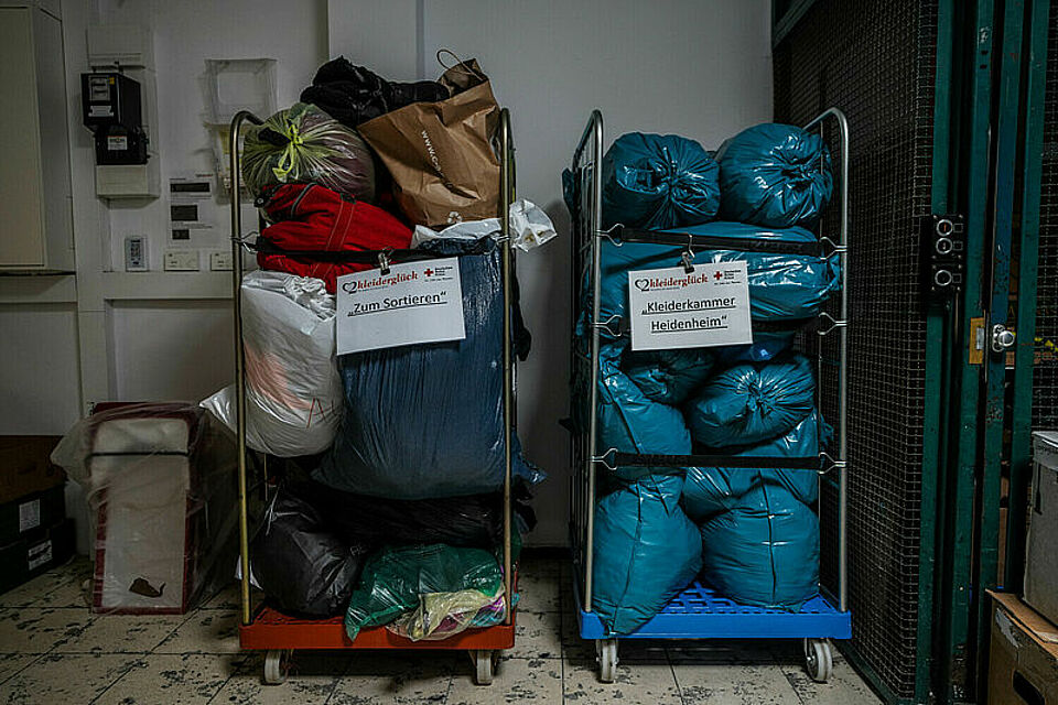 Nicht alles, was in Giengen abgegeben wird, bleibt auch in Giengen. Zwei Fahrer, angestellt auf Honorarbasis, fahren mehrmals pro Woche zwischen dem Kleiderglück und der Heidenheimer Kleiderkammer hin und her, um gegebenenfalls Ware zu tauschen. Aussortierte Kleidung, die kaputt ist, geht an die Kollegen aus Schwäbisch Gmünd und von dort weiter zu Firmen, die sich darauf spezialisiert haben, aus Klamotten Malervlies, Fußmatten oder Putzlappen herzustellen.