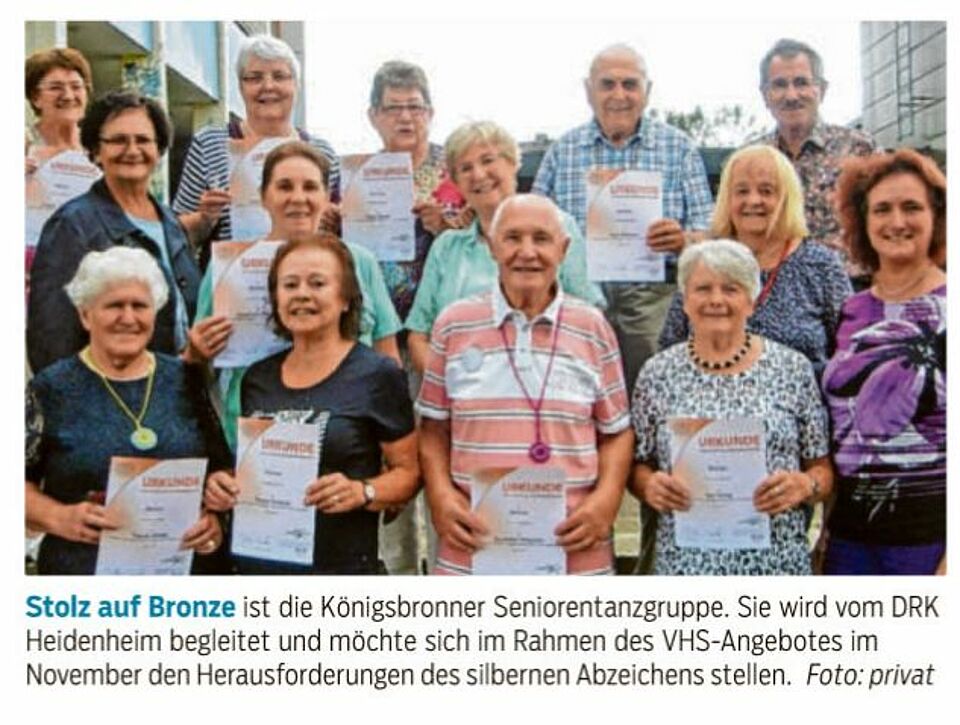 Bronzenes Abzeichen für Königsbronner Seniorentanzgruppe (HZ v. 02.08.17)