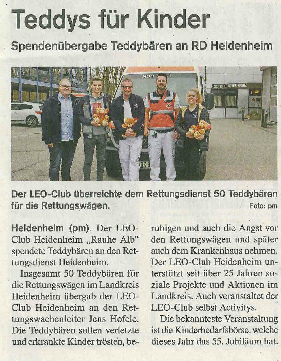 Teddys für den Rettungsdienst